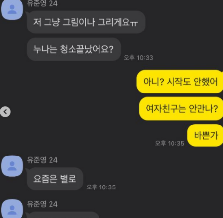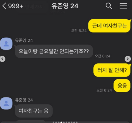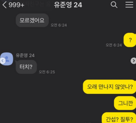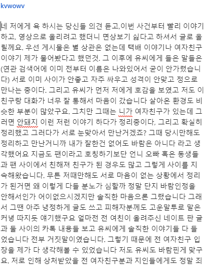 그리고 유준영과 나눴던 메시지나 카톡 내용을 올렸는데, 본인은 대화때마다 여자친구를 언급했다고 하지만 당초 여자친구가 있는 남자에게 지속적인 연락을 한 것 자체가 오해의 소지가 될 수 있으니 자체했으면 좋지 않았을까 생각이 듭니다.
